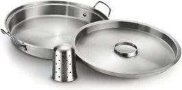 Gevogelte braden is nog nooit zo makkelijk geweest als met de PRO gevogeltestomer en -pan. Doordat de gevogeltestomer en -pan van hoogwaardig RVS gemaakt is, zorgt het ervoor dat de gevogeltestomer en -pan eenvoudig schoon te maken is en een leven lang meegaat. Het 3 in-1 ontwerp bestaat uit een wok met vlakke bodem, een kookplaat en een smaakkegel. Vul de wokbak met uw favoriete smakelijke vloeistoffen, plaats de kookplaat eroverheen en voeg vervolgens de smaakkegel toe. Door de openingen van de smaakkegel komt de stoom. Terwijl de kip gebraden wordt, roostert u uw favoriete groenten op de kookplaat. De wok met vlakke bodem is niet alleen geschikt om in te roerbakken, maar ook om in te braden.