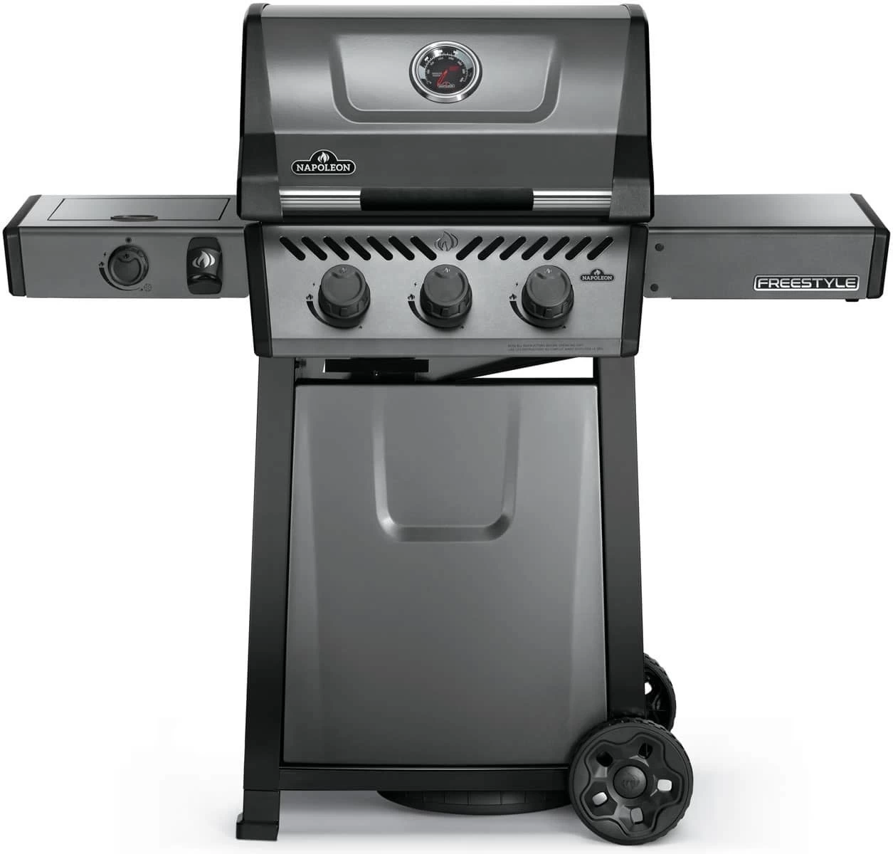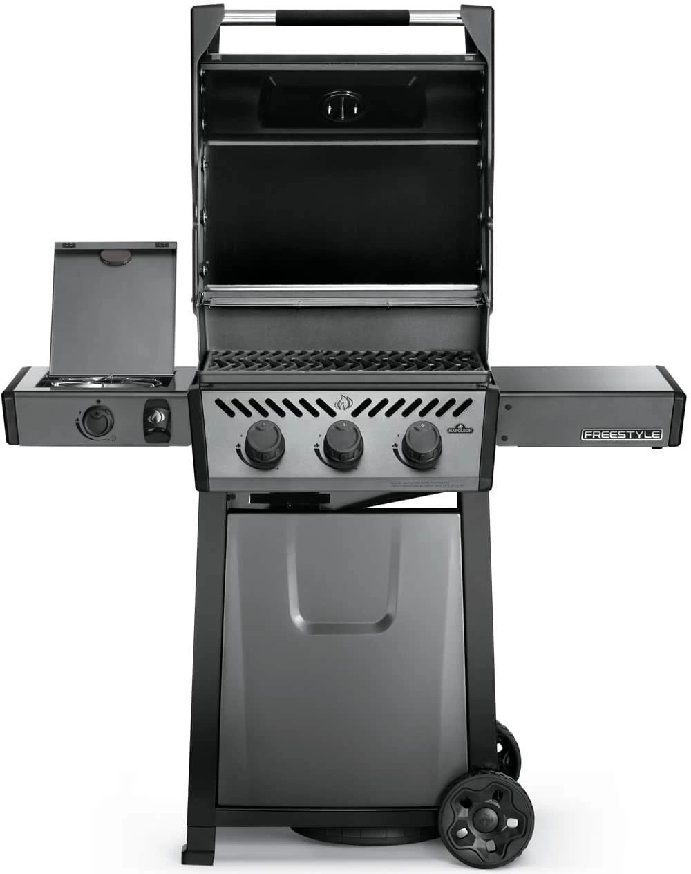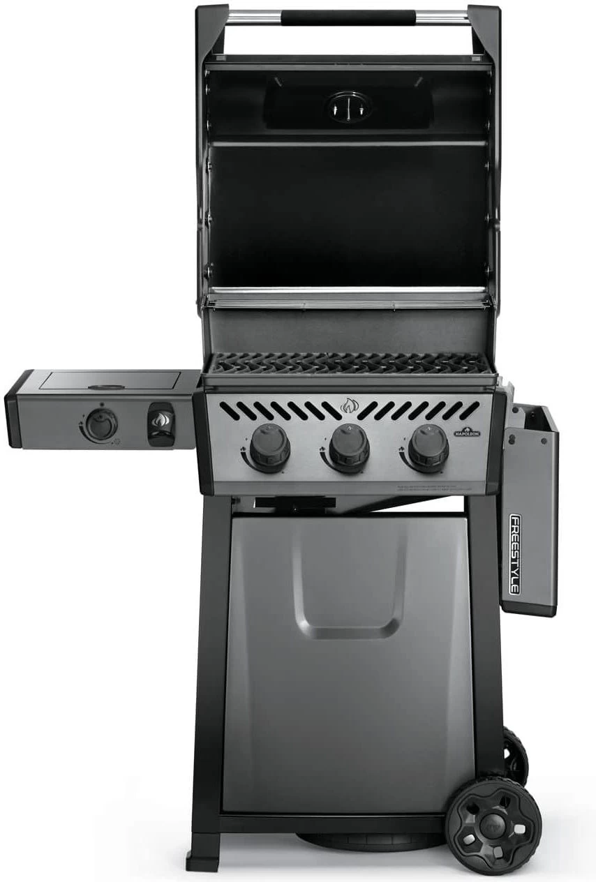De nieuwste uitblinker van Napoleon®, de Freestyle! Klein maar fijn en een echte krachtpatser. De Freestyle 365 SB heeft dankzij de inklapbare rechter zijtafel een bijzonder compact ontwerp. De drie RVS hoofdbranders zorgen dankzij de geëmailleerde hitteverdelers voor een gelijkmatige hitteverdeling.