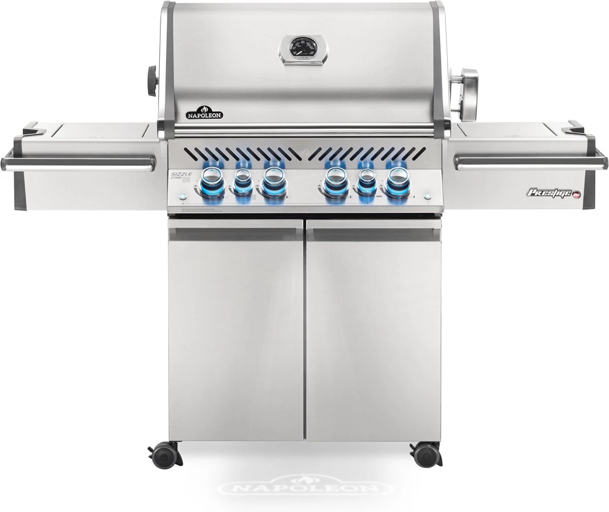 De Prestige PRO™ 500 gasbarbecue van Napoleon combineert indrukwekkend design met professionele functionaliteit. Het duurzame roestvrijstalen frame en chroomaccenten geven een luxe uitstraling, terwijl de hoogwaardige interne componenten, zoals WAVE™-grillroosters en infrarood zijbrander, zorgen voor meesterlijke grillresultaten. Met 6 branders, verlichte grillzone, Spectrum NIGHT LIGHT™ bedieningsknoppen en veiligheidsfuncties is deze barbecue een vorstelijke keuze voor veeleisende grillmeesters. Met een totaal grilloppervlak van 5770 cm² en hoogwaardige RVS constructie biedt deze barbecue een ongeëvenaarde buitenkookervaring. 25,7 kW.