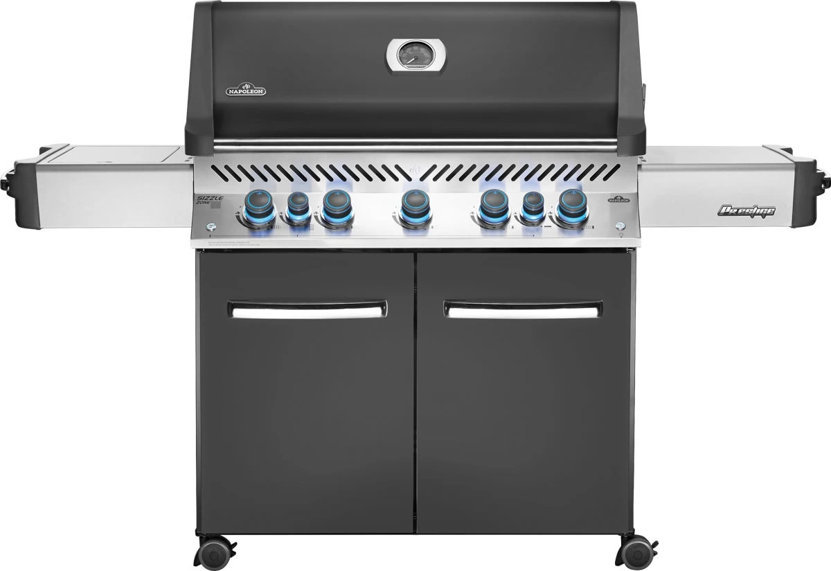 De Prestige® 665 gasbarbecue van Napoleon is de ultieme grillervaring verpakt in roestvrijstalen pracht. Met vijf hoofdbranders, een infrarood achter- en zijbrander biedt deze barbecue acht unieke bereidingstechnieken. De iconische WAVE™-grillroosters zorgen voor die perfecte grillstrepen, terwijl hoogwaardig roestvrij staal de duurzaamheid waarborgt. Met SafetyGlow op de bedieningsknoppen en functies zoals SIZZLE ZONE™ infrarood zijbrander, is deze barbecue niet alleen een culinaire krachtpatser, maar ook een veilige en betrouwbare keuze. 29.7 kW, grilloppervlak van 94 x 46 cm.