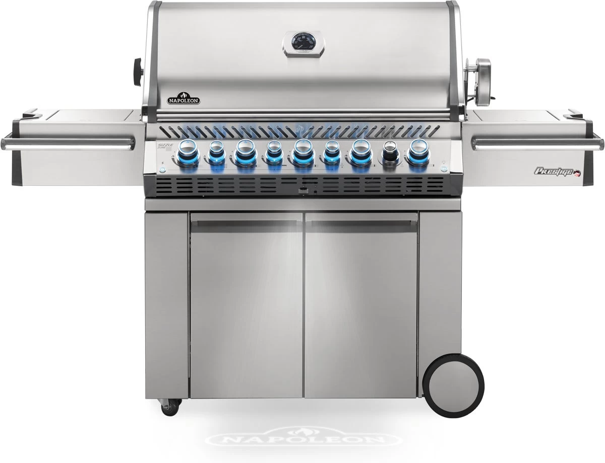 De Napoleon Prestige PRO™ 665 gasbarbecue is een meesterwerk in professioneel buitenkoken. Met infrarood achter- en zijbranders, biedt het superieur warmtebehoud, waardoor het fungeert als een veelzijdige oven voor perfect aangezette vlees- en visgerechten. Iconische WAVE™-grillroosters en proximity-verlichting geven die kenmerkende grillstrepen en voegen een luxueuze uitstraling toe. De geïntegreerde smoker-lade en speciale brander maken rooktoevoeging eenvoudig. De duurzame, glanzende roestvrijstalen behuizing met chroomaccenten trotseert alle weersomstandigheden. Onder het deksel is de hoogwaardige rvs-kwaliteit te vinden voor grillroosters, buisbranders, warmteverdelers en het bassin. Met 31 kW vermogen, 8 branders en 7400 cm² grilloppervlak levert deze barbecue ongeëvenaarde prestaties. Bedieningsknoppen met LED Spectrum NIGHT LIGHT™ voegen kleurrijk entertainment toe en lichten rood op bij onbedoelde gasopeningen voor extra veiligheid in het donker.