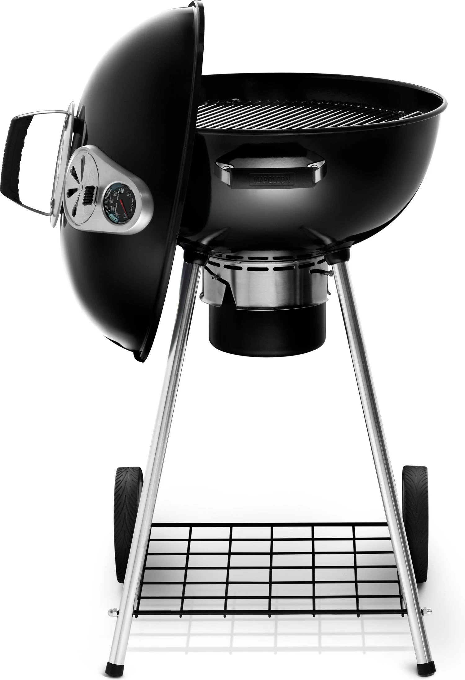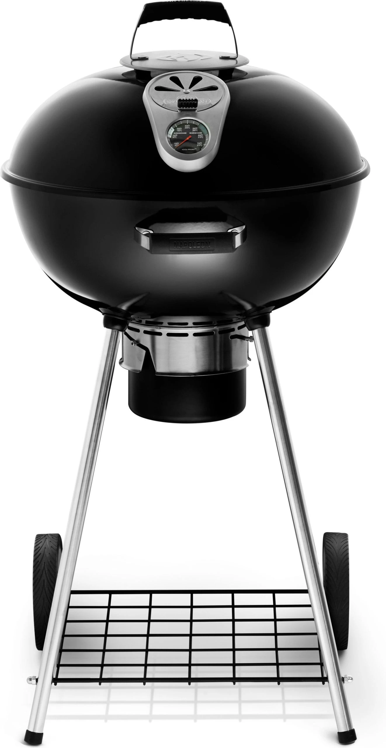 De Napoleon houtskoolgrill NK22K-LEG zorgt voor traditioneel grillplezier. Door het geoptimaliseerde ventilatiesysteem, dat ook volledig gesloten kan worden, kan de grill hele lage temperaturen bereiken.Het deksel van platinumporselein met ACCU PROBE thermometer is met behulp van het Cool Touch handvat gemakkelijk te openen en kan dankzij een geïntegreerde dekselhouder aan de zijkant van de grill gehangen worden.
