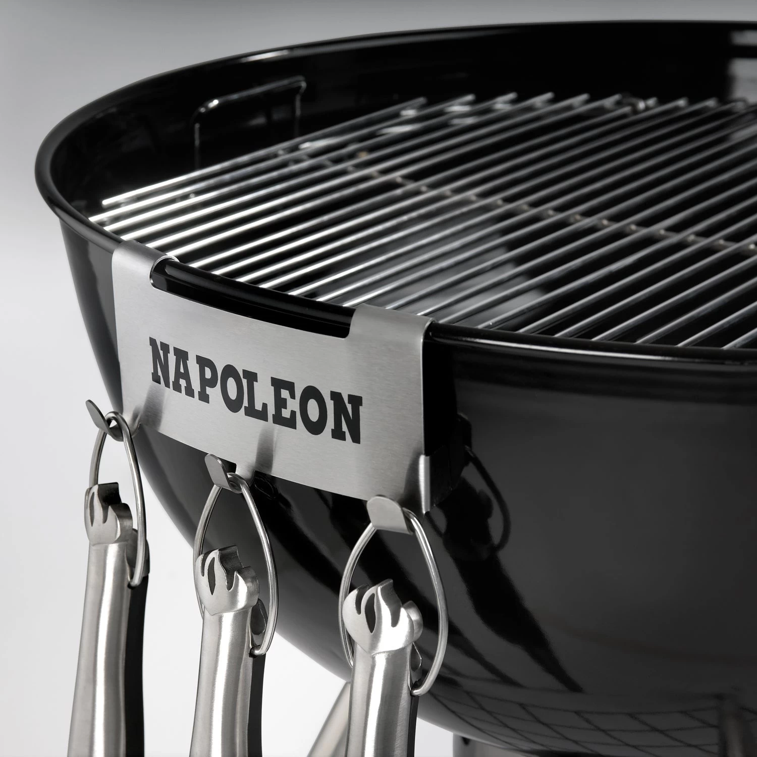 Op deze manier is de kettle altijd op de plek waar gegrilld wordt. Tangen en spatels zijn altijd dichtbij door de meegeleverde toolhaak.