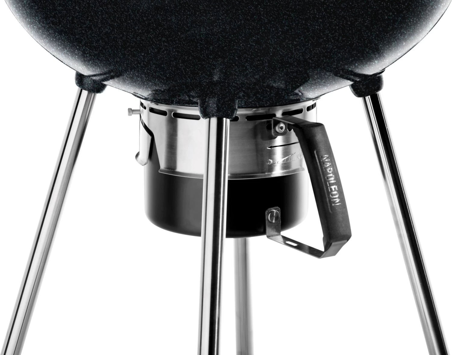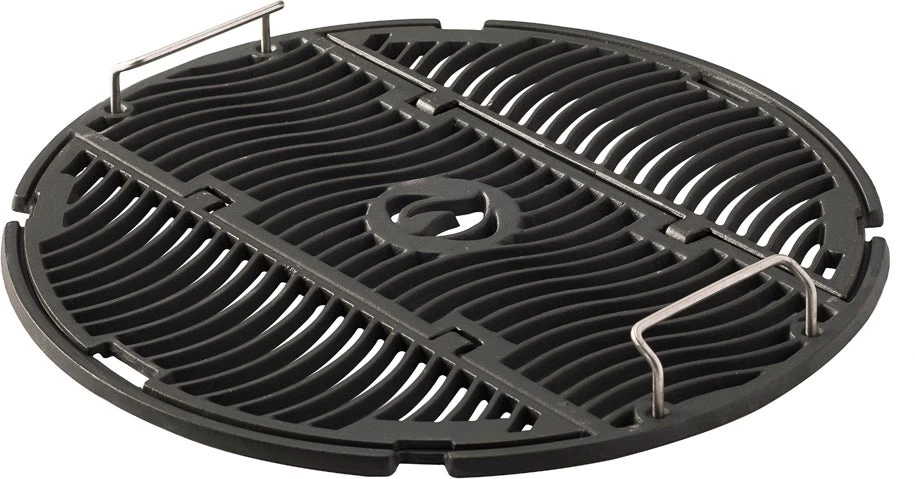 Het in drie hoogten verstelbare, klapbare en geëmailleerde gietijzeren WAVE™ (Ø 57 cm) grillrooster zorgt voor een gelijkmatige en langdurige warmte verdeling, terwijl de RVS-warmteverdeler op het houtskoolrooster de warmte gelijkmatig verdeelt en verbrand houtskool naar de as-opvangpan transporteert.