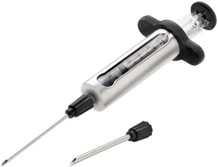 Met de Napoleon marinade injectiespuit sla je twee vliegen in één klap. Je geeft meer smaak aan je grotere vlees- en visgerechten en voorkomt dat jouw gerecht uitdroogt wanneer je het langere tijd grillt om het te garen. De marinade injectiespuit wordt geleverd inclusief een kleine en een grote naald. Met de kleine naald injecteer je vloeistoffen zoals sauzen, boter, wijn en dunne marinades. De grote naald gebruik je om fijn gehakte ingrediënten zoals knoflook of kruiden te injecteren. Maak je injectiespuit na gebruik schoon met één van de meegeleverde schoonmaakborstels om haar de volgende barbecueparty opnieuw te gebruiken.