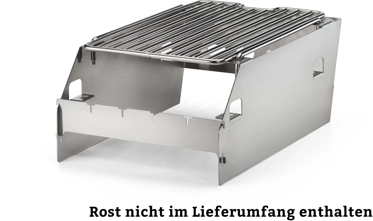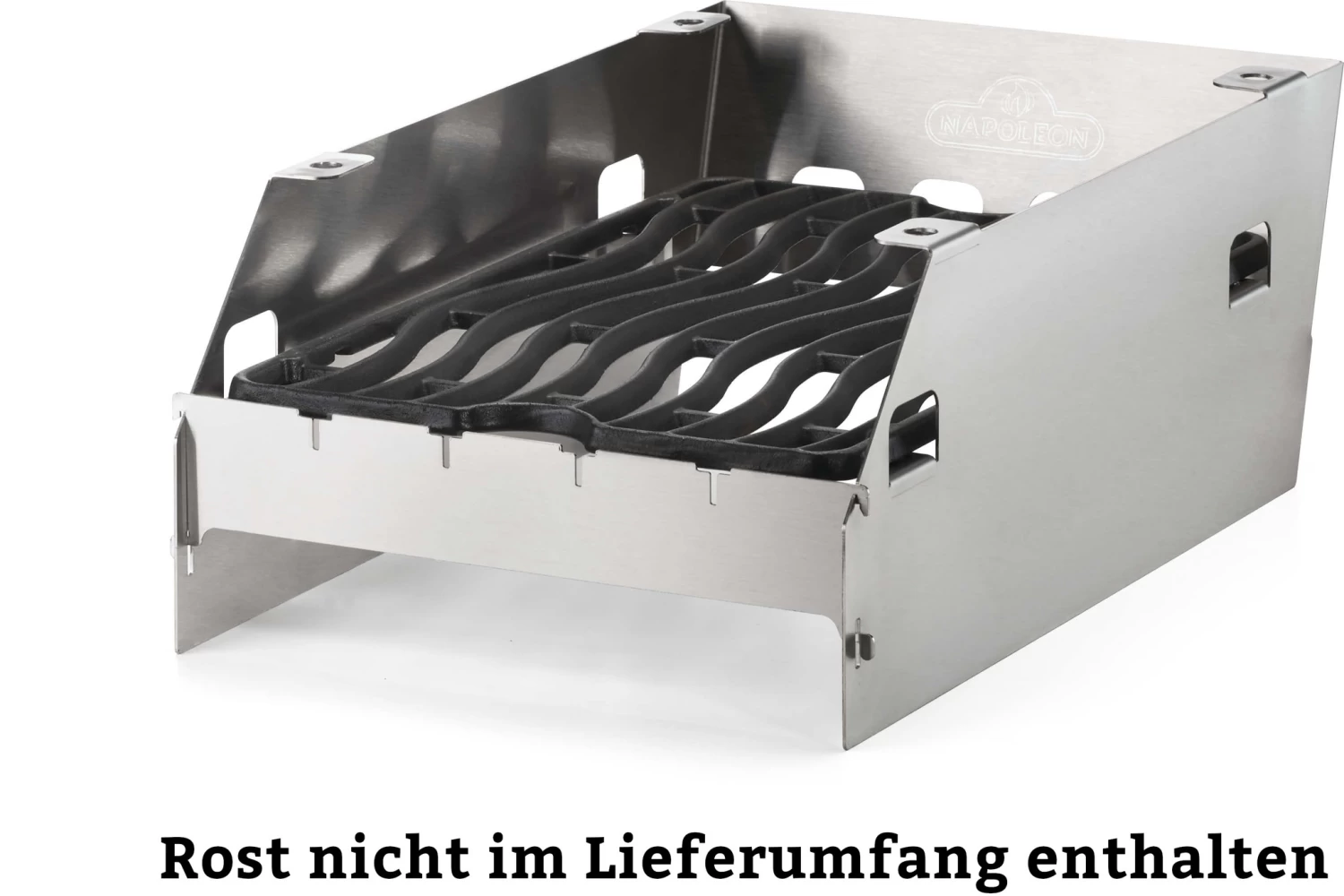 Multifunctioneel SIZZLE ZONE rek, te gebruiken als windscherm maar ook te gebruiken om het rooster op verschillende hoogtes in te stellen. Ontworpen met gleuven voor 4 shaschlik spiezen. Passend voor de