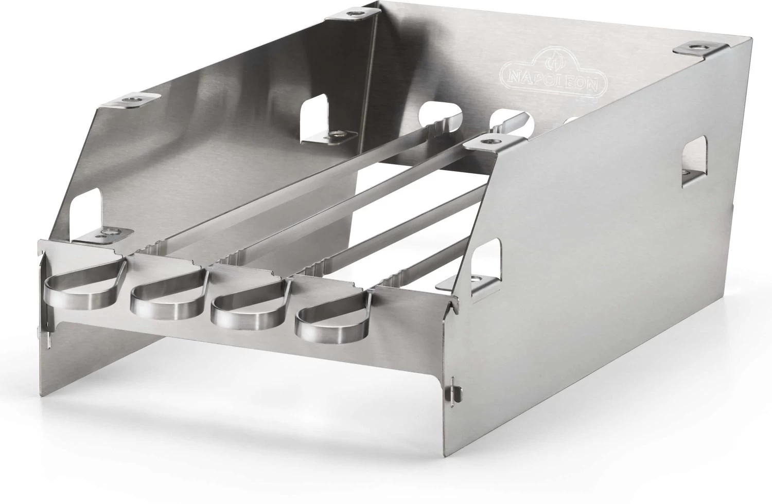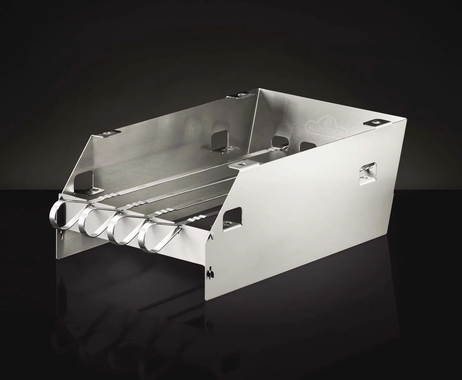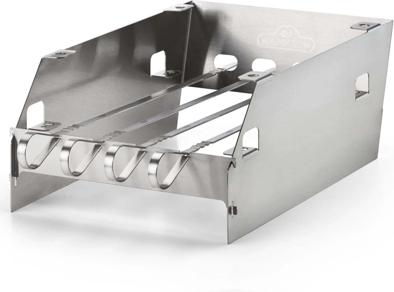 Multifunctioneel SIZZLE ZONE rek, te gebruiken als windscherm maar ook te gebruiken om het rooster op verschillende hoogtes in te stellen. Ontworpen met gleuven voor 6 shaschlik spiezen. Passend voor de RSE, Prestige en Prestige PRO modellen.