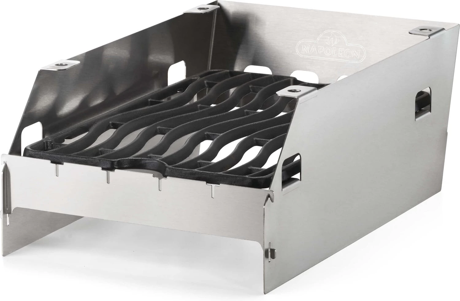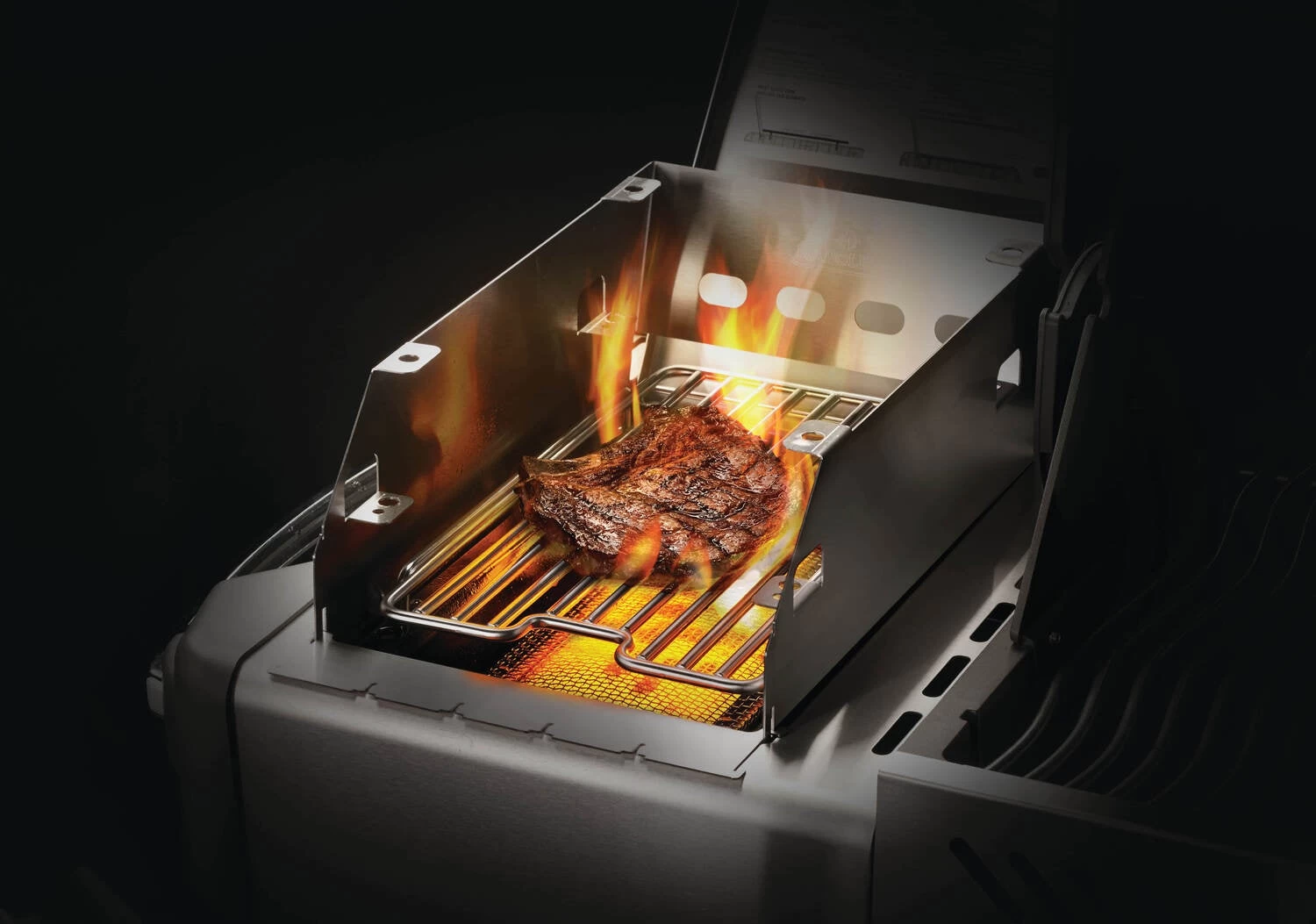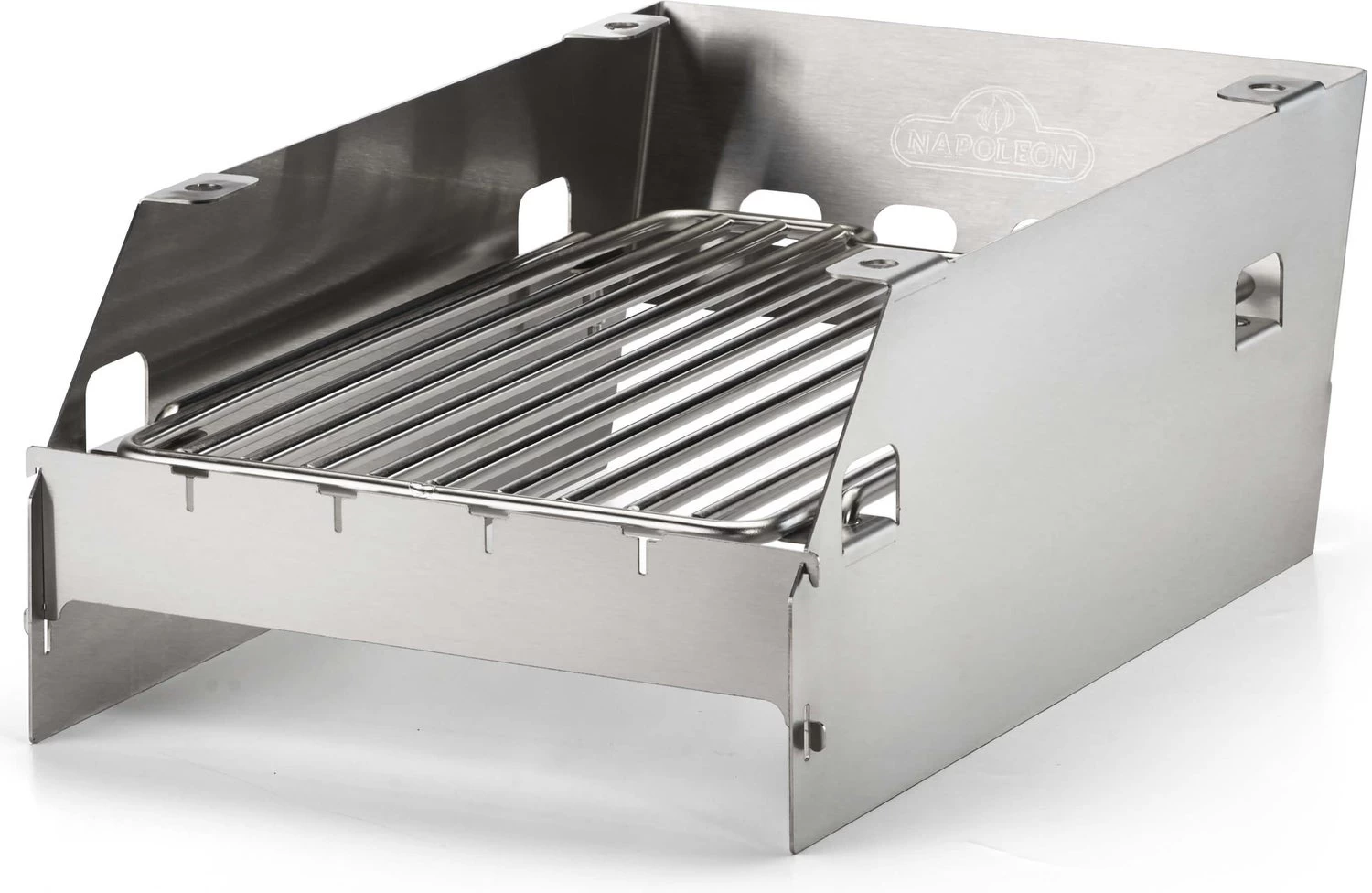 Multifunctioneel SIZZLE ZONE rek, te gebruiken als windscherm maar ook te gebruiken om het rooster op verschillende hoogtes in te stellen. Ontworpen met gleuven voor 6 shaschlik spiezen. Passend voor de RSE, Prestige en Prestige PRO modellen.